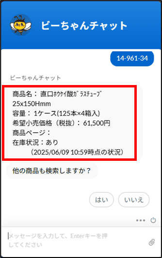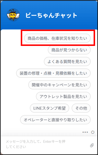 ワケンビーテックのホームページにある「チャットボット」機能から、