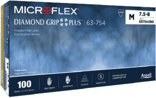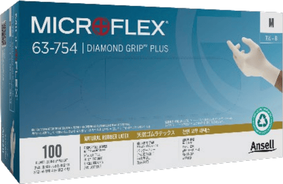 63754080 Diamond Grip Plus PF Latex Gloves M