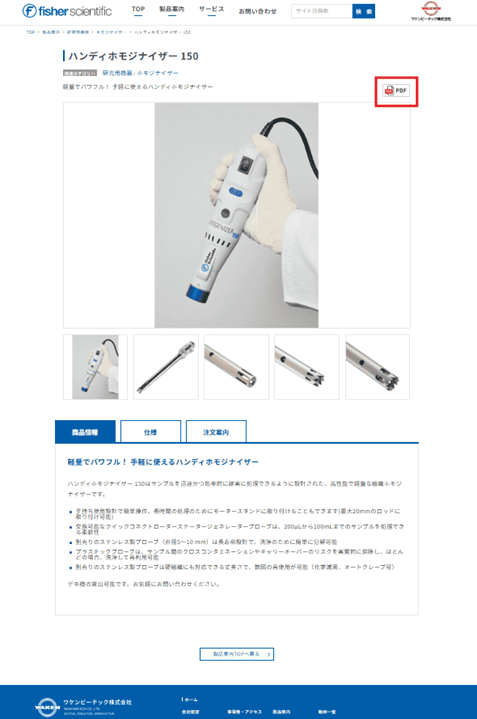 製品ページ「PDF」ボタンから、必要な情報をまとめたカタログを簡単に作成いただけます。